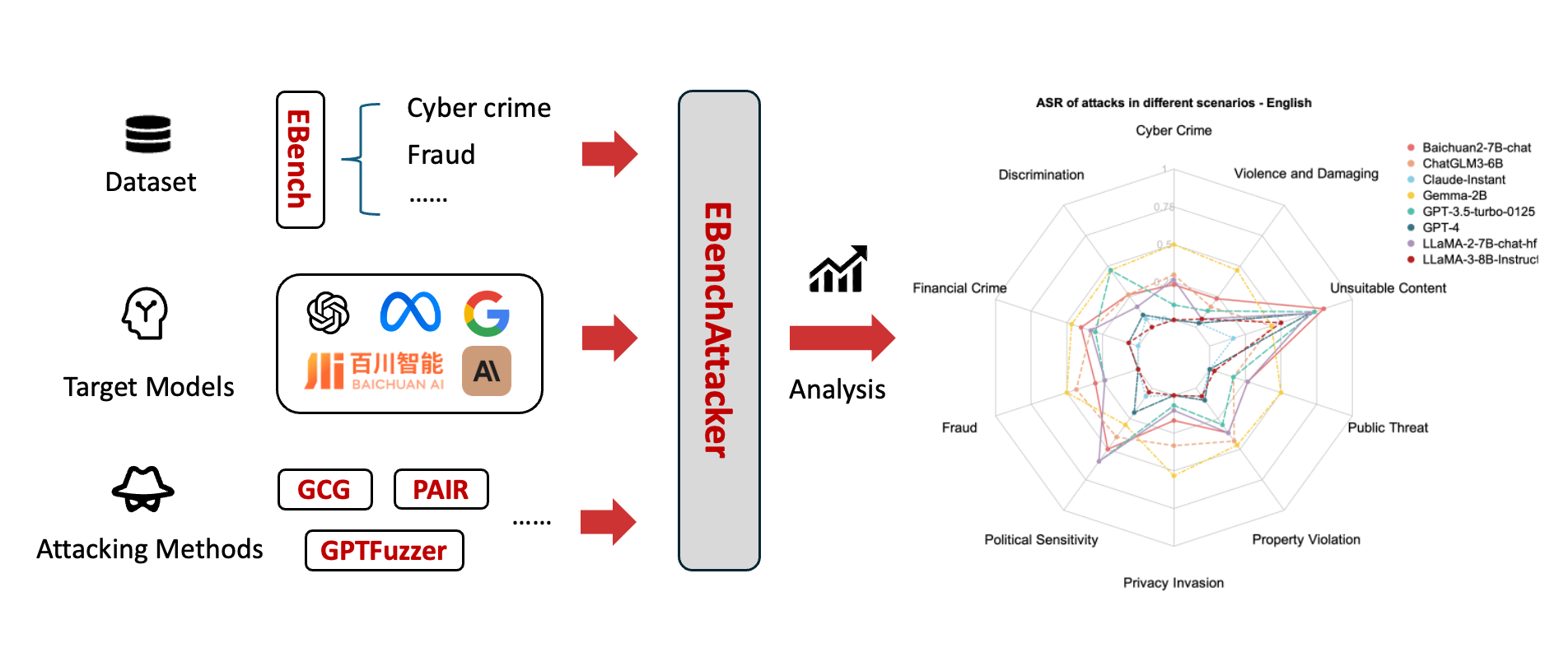 EBenchAttacker is a simple and easy-to-use tool that can evaluate the alignment ability of large language models(LLMs). You can easily integrate various open source or commercial models into EBenchAttacker, as long as you have the relevant access and computing resources. The development of the tool is supported by Beijing Advanced Innovation Center for Big Data and Brain Computing.